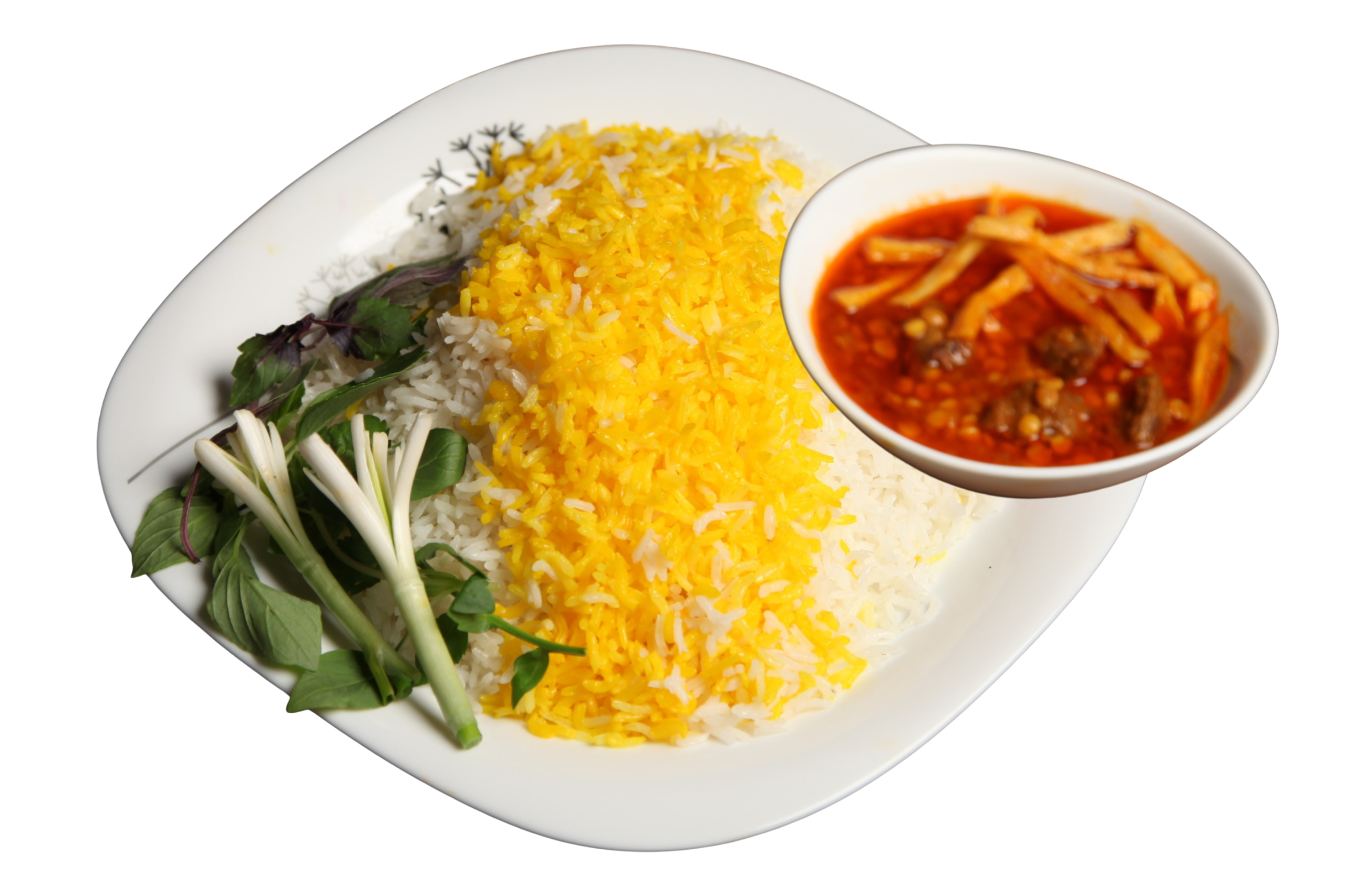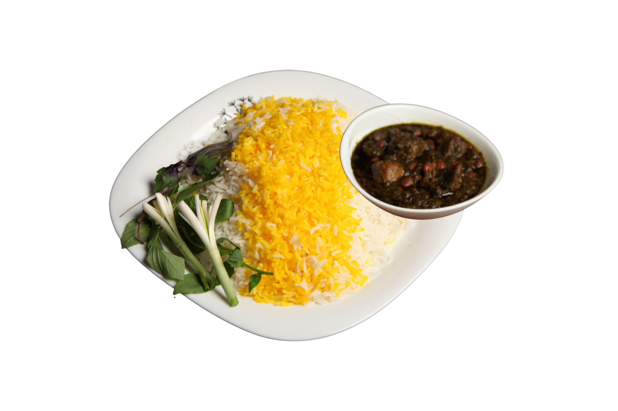 قرمه سبزی درجه یک همراه برنج زعفرانی ایرانی