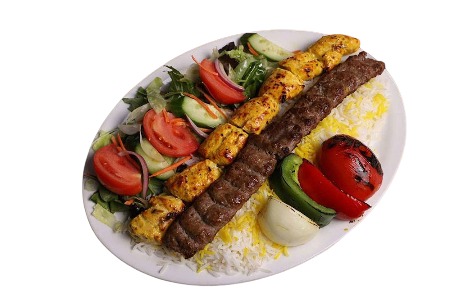 چلو جوجه کباب بدون استخوان دربند تهیه شده با سینه مرغ تازه و برنج درجه یک ایرانی