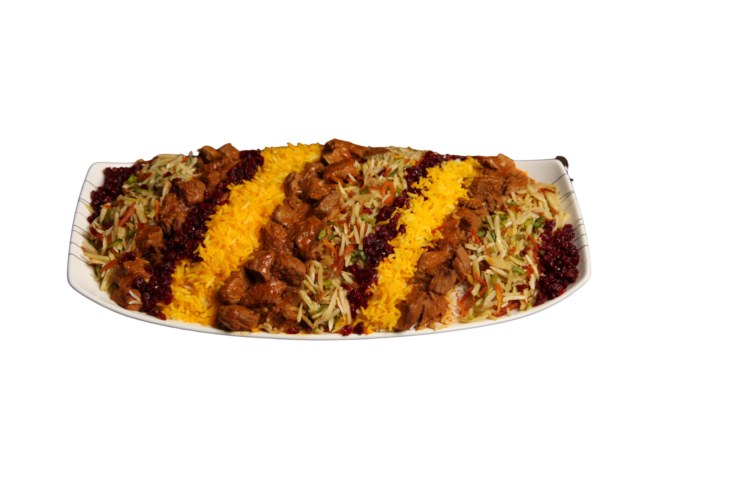 قیمه نثار مخصوص دربند تهیه شده با گوشت تازه و برنج ایرانی درجه یک و خلال پسته و بادام مرغوب ایرانی و زعفران